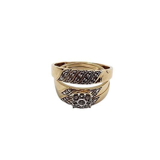10K Yellow Gold 0.15Ct Round Diamond Ladies Trio Set Jewelry