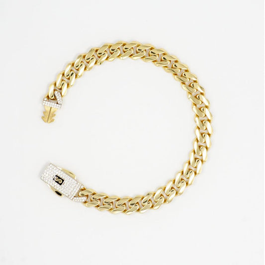 14K Yellow Gold Monaco Original Classic Link Bracelet with Stone Lock 6mm x 8''