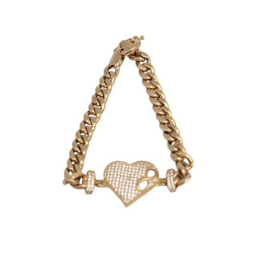 10K Yellow Gold Cuban Link Heart Stone Bracelet 6.5mm x 7''