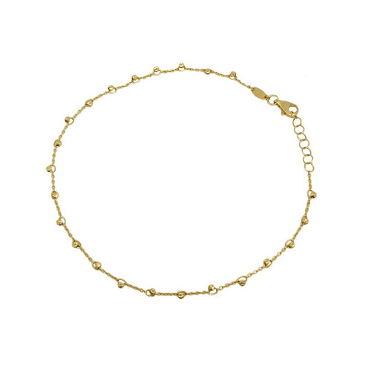 14K Yellow Gold Beaded Station Satellite Ankle Bracelet, Size 10
