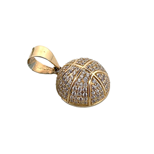 14K Yellow Gold Half Basketball Pendant