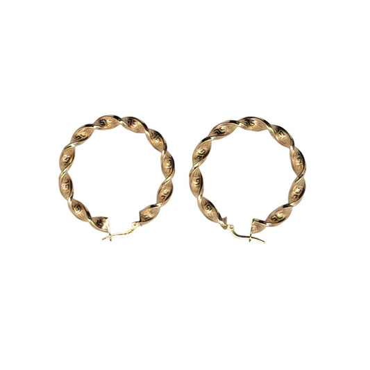 14K Yellow Gold Twisted Hoops Earring 1mm