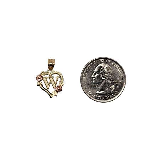 10K Yellow Gold Heart With Letter W Pendant
