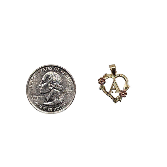 10K Yellow Gold Heart With Letter A Pendant