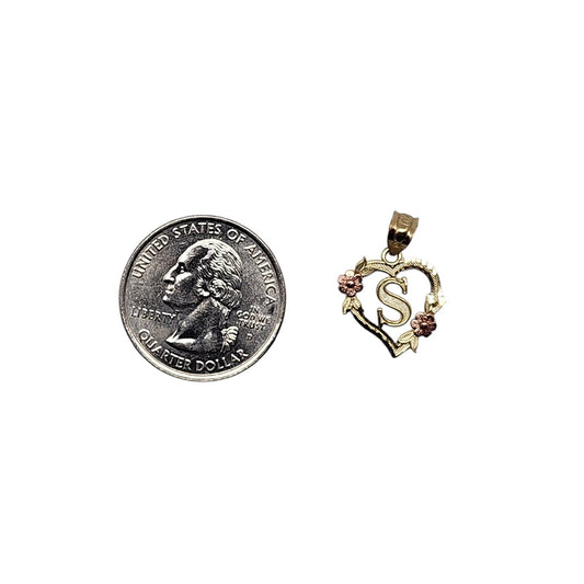 10K Yellow Gold Heart With Letter S Pendant