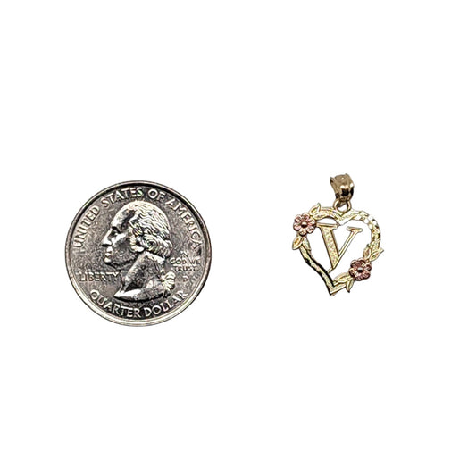 10K Yellow Gold Heart With Letter V Pendant