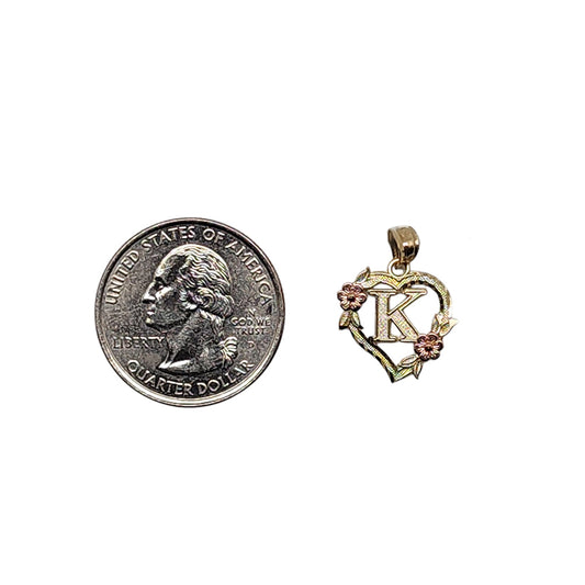 10K Yellow Gold Heart With Letter K Pendant