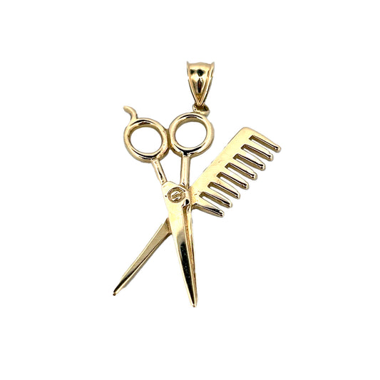 10K Yellow Gold Scissors and Brush Pendant