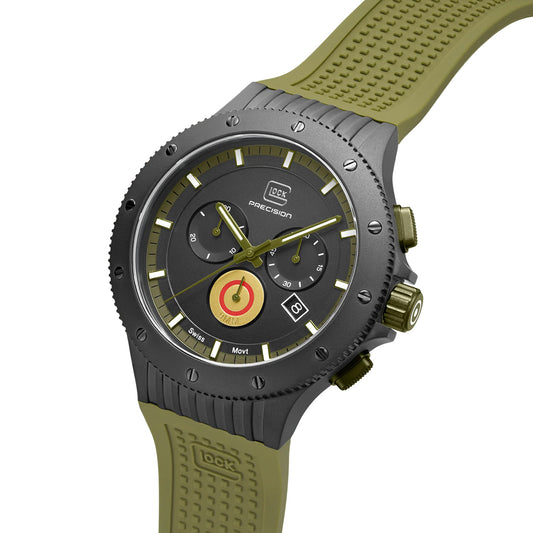 Glock Precision Men Watch. Khaki Steel Case / Black Silicone Strap GW-24-3-24