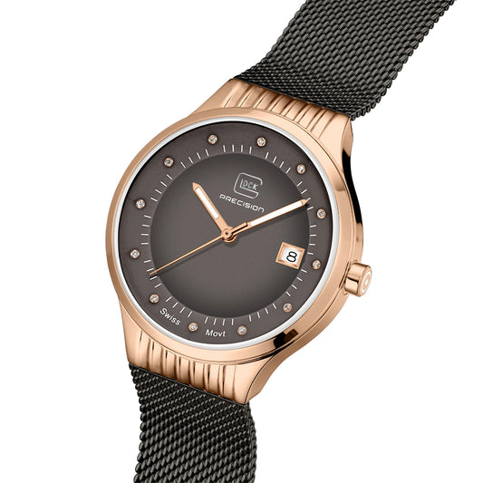 Glock Precision Men Watch Rose Gold Steel Case / Grey Mesh Strap GW-28-2-18