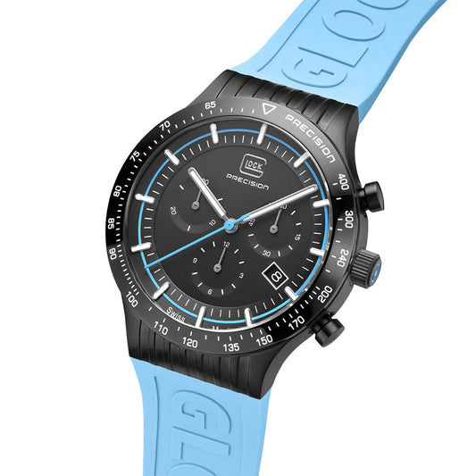 Glock Precision Men Watch. Black Steel Case / Blue Silicone Strap GW-15-2-22