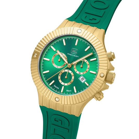 Glock Precision Men Watch. Gold Steel Case / Green Silicone Strap GW-37-2-24