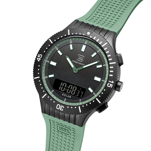 Glock Precision Men Watch. Black Steel Case / Green Silicone Strap GW-40-2-24