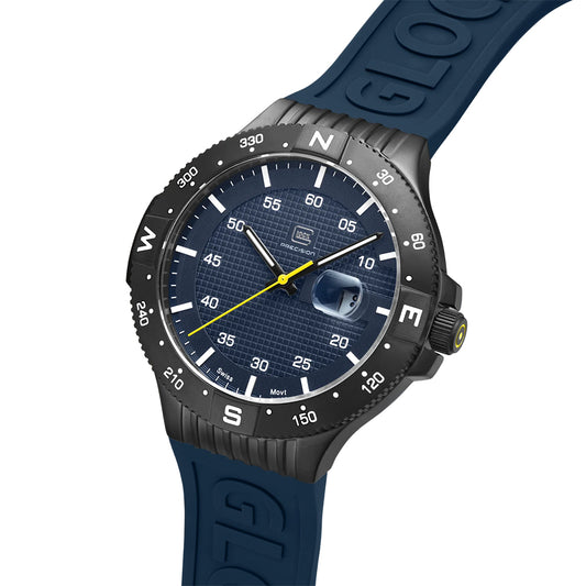 Glock Precision Men Watch. Black Steel Case / Blue Silicone Strap GW-34-2-24