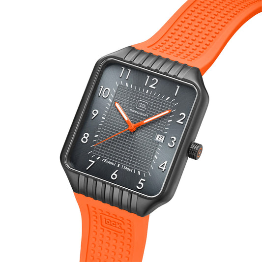 Glock Precision Men Watch. Black Steel Case / Orange Silicone Strap GW--2-1-24