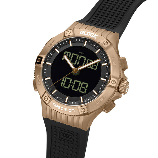 Glock Precision Men Watch Gold Steel Case / Black Silicone Strap GW-34-4-24