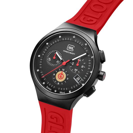 Glock Precision Woman Watch. Black Steel Case / Red Silicone Strap GW-16-1-18