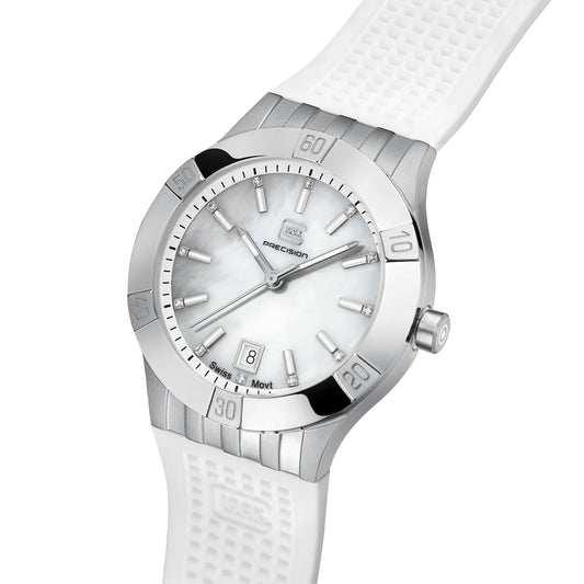 Glock Precision Women Watch. Silver Steel Case / White Silicone Strap GW-32-1-20
