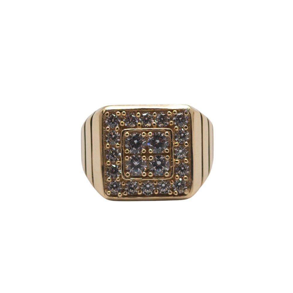 14K Yellow Gold Square With Stone Hollow Ring Size 10.5